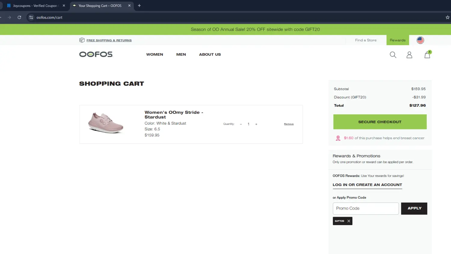 Unfortunately, OOFOS typically only allows one coupon code per order. That means you can’t stack multiple coupon codes to get a bigger discount. Since we have deals like 20% off and 20$ off on JoyCoupons, you won’t need to stack anything.