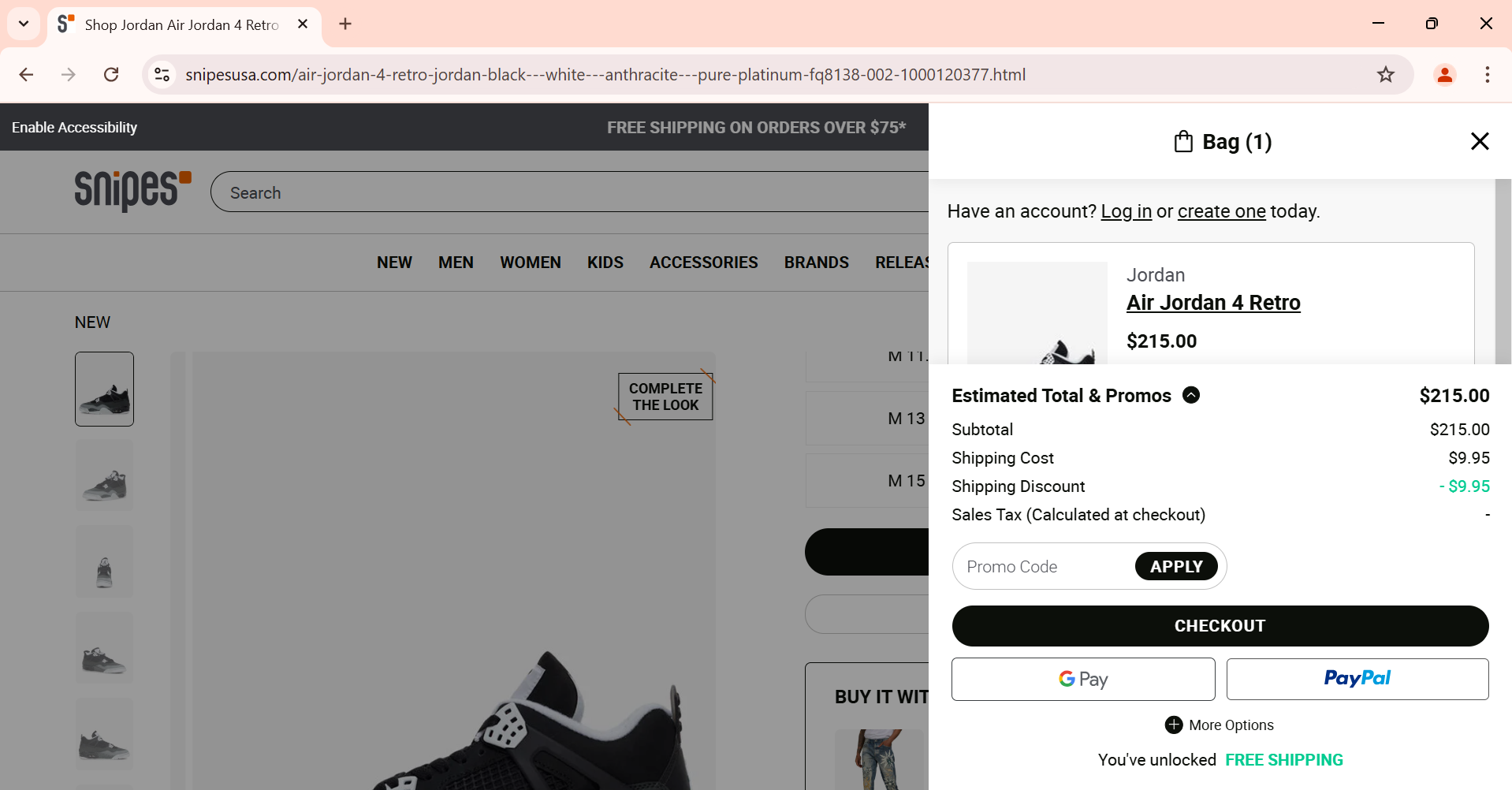 Snipes often offers free shipping on orders over $75. You can also find free shipping promo codes on JoyCoupons or by signing up for our email newsletter.